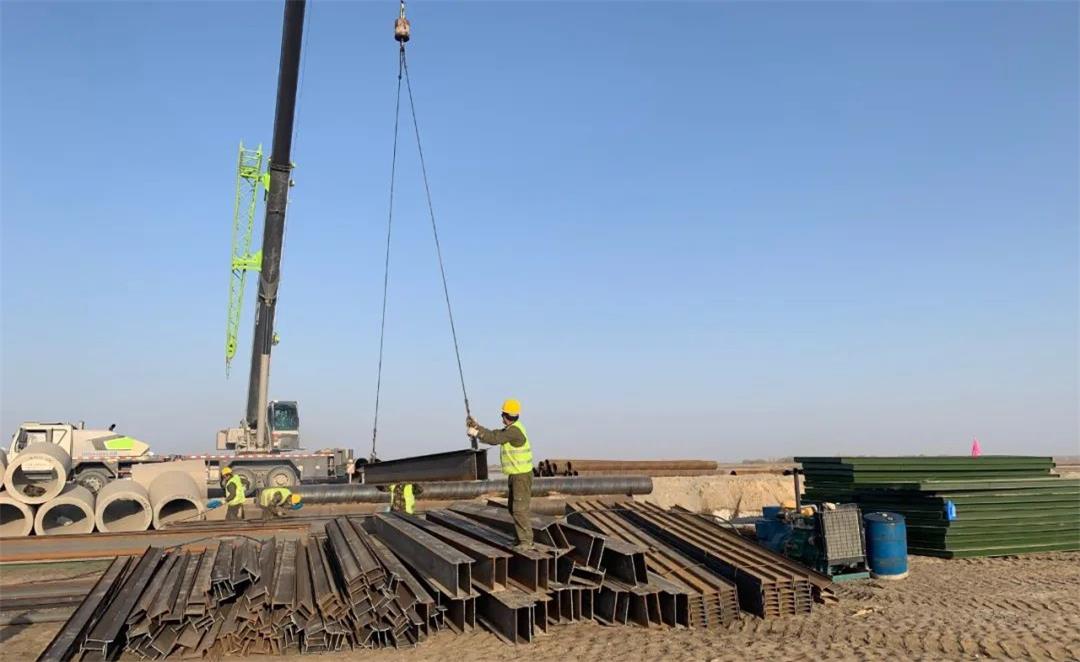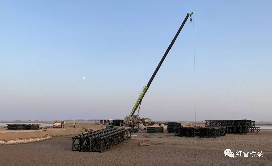 紅雷橋梁承接艾力西湖鎮(zhèn)公路EPC項目的鋼便橋建設工程。該工程鋼便橋橋面全長約500米,寬度為5米。施工準備前期根據(jù)總體施工進度計劃以及樁基階段性工期目標,我司項目部對主要材料進場進行了合理安排,以滿足施工需要。鋼管樁、貝雷梁、型鋼等主要材料均提前運輸至施工區(qū)域,以便貝雷鋼橋施工的及時展開。